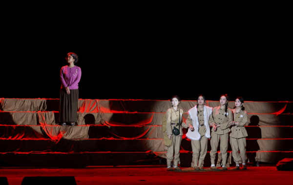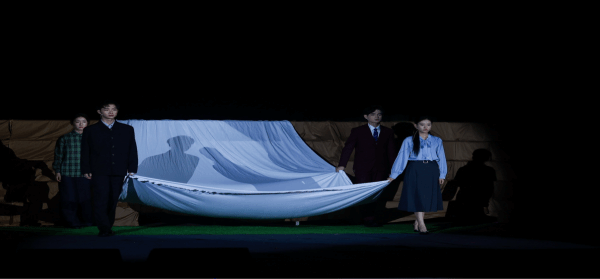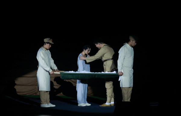 舞台上的白色纱幕如同一道天堑,将生与死、现实与回忆巧妙地分隔开,却又在情感上紧密相连。灯光与音响的完美结合,营造出一种既悲壮又充满革命理想主义希望的氛围。尤其是当灯光渐暗,音乐低沉时,仿佛能听见革命岁月的流逝与先辈精神的低语。这种设计极大地增强了话剧的艺术感染力和思政教育效果,让观众沉浸其中,与革命先辈同悲共喜。