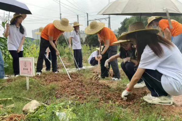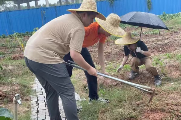 活动中,橙色的身影在雨中显得格外靓丽,即使雨越下越大,但是大家并没有畏惧,而是继续在地里劳动,大家干劲十足,互相配合,看着地里的环境通过自己双手的劳动美化了许多,看着旁边清理出来的杂草石块,掺着雨水的脸上洋溢出幸福的笑容。